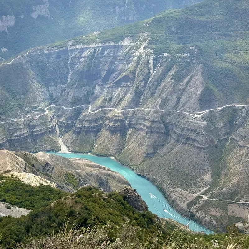 Наша экскурсия начинается с прогулки на катере по Чиркейскому водохранилищу. Здесь вы увидите, как волны отражают небо, создавая иллюзию, будто плывете по облакам. А величественные Чиркейские ущелья станут идеальным фоном для ваших фотографий!