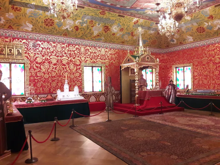 Мы пройдем по Красному крыльцу, как настоящие гости царя, и окажемся в парадных сенях. Затем перед нами откроются 26 воссозданных комнат на половинах царя, царицы и царевичей.