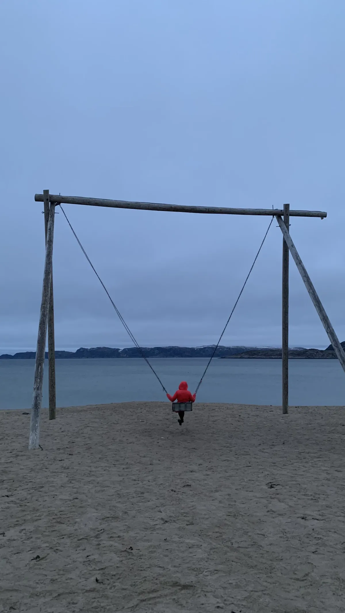 После этого памятного маршрута мы вернемся обратно в историческую часть Териберки и полюбуемся пляжем с гигантскими качелями.