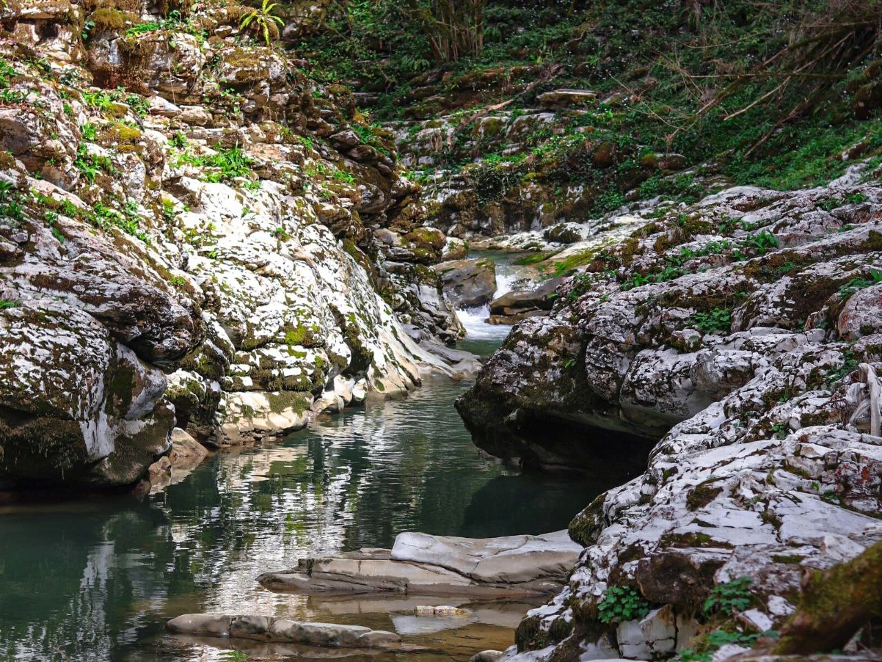Представьте: вы стоите посреди величественного каньона, вокруг вас отвесные скалы, покрытые изумрудным мхом. Прохладная вода нежно омывает ваши ноги, а солнечные лучи, пробиваясь сквозь кроны деревьев, создают причудливую игру света и тени. Тишина настолько глубокая, что вы можете услышать собственное дыхание. Это каньоны реки Псахо — место, где время замедляется, а душа находит покой. Здесь тишину нарушает только шум воды и пение птиц. Это не кадр из фильма, а реальность, доступная вам здесь и сейчас.