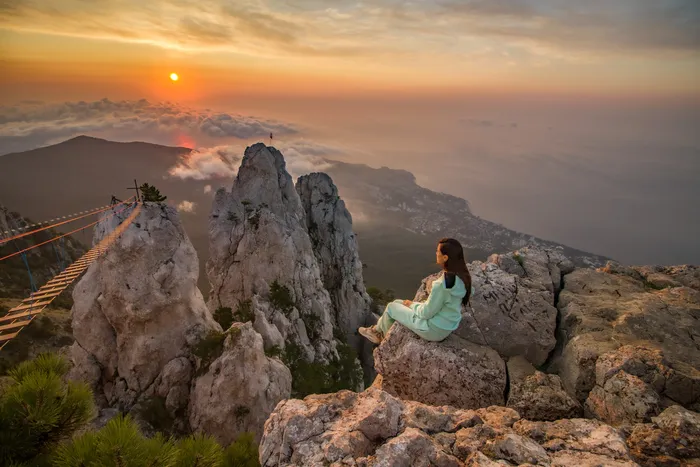 И вот — солнце выстреливает из-за горизонта. Зубцы Ай-Петри вспыхивают, как корона огня. Южный берег разворачивается под вами на 180° — море, горы, облака у ваших ног. Фотограф ловит свет, ловит вас в кадре, ловит этот момент. А вы просто стоите и понимаете: вот оно, то самое чувство, ради которого стоит путешествовать. Вы получите такие невероятные кадры, за которые в фотостудии попросили бы, как за крыло самолёта.
