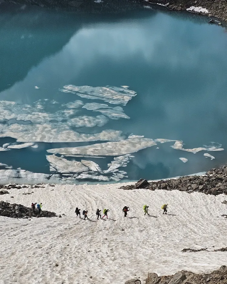 • Техника безопасности: перед выходом на ледник и сложные участки гид проводит обязательный инструктаж по технике передвижения и поведения в горах (движение в связке на леднике, правила пересечения морен и осыпей).