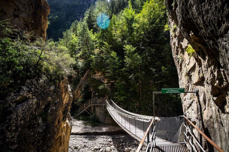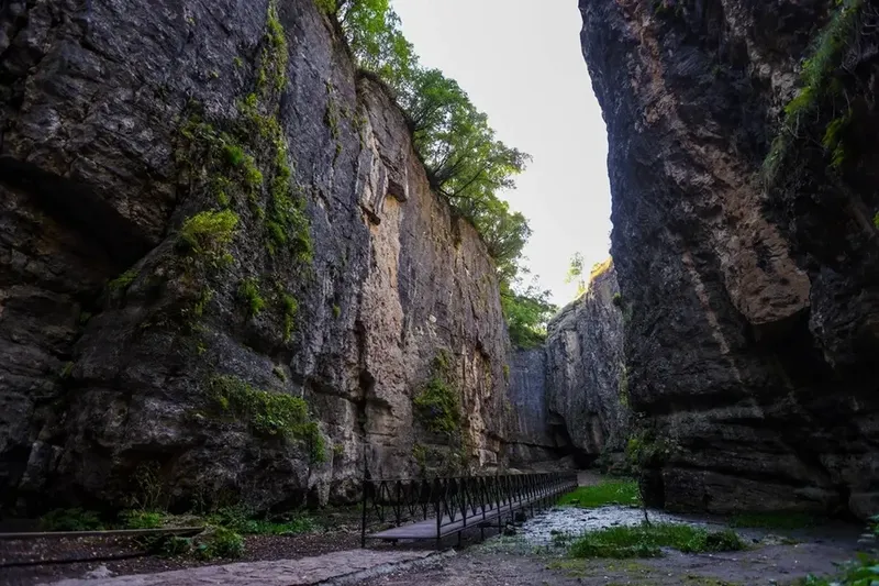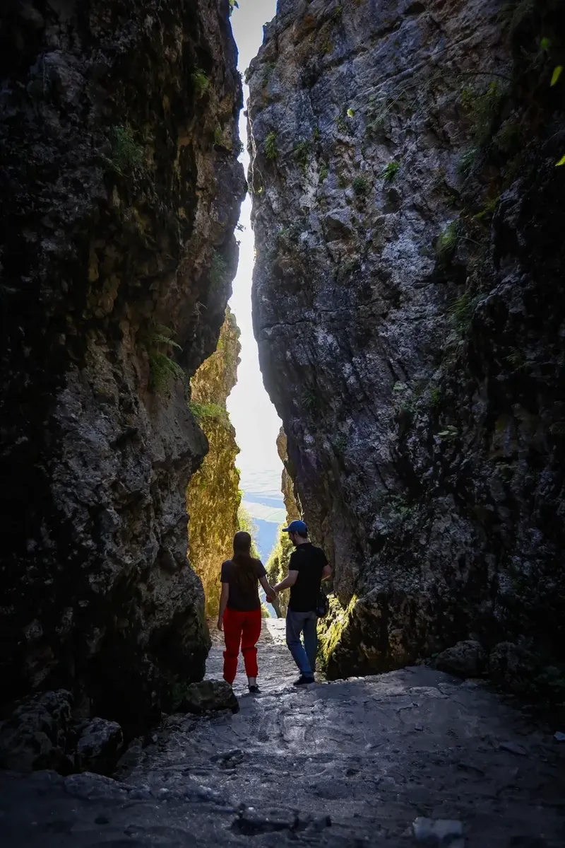 Начнём также – с сытного завтрака, ведь важно запастись энергией для новых приключений. Первая наша остановка – Карадахская теснина. Это узкое ущелье протяженностью 500 метров поражает воображение. Высота стен достигает 170 метров и они словно смыкаются над головой, создавая ощущение, будто вы попали в другой мир.