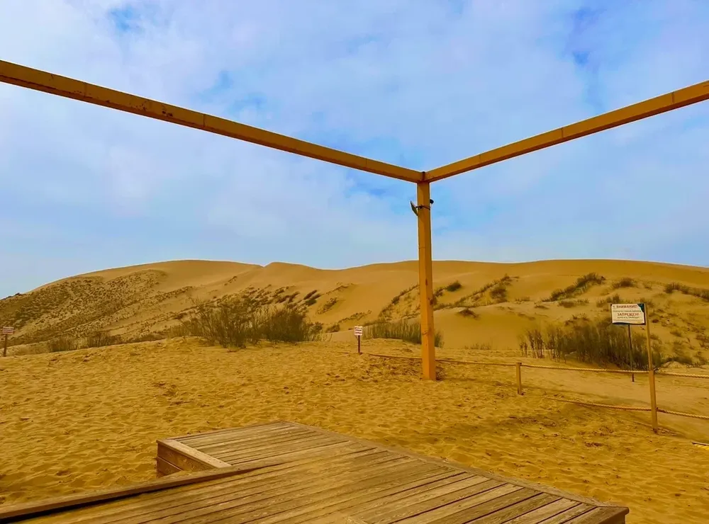 Наш маршрут начинается с посещения Сары-Кум - одного из высочайших барханов во всей Евразии. Его 252-метровая песчаная громада впечатляет своей грандиозностью и необычностью.
