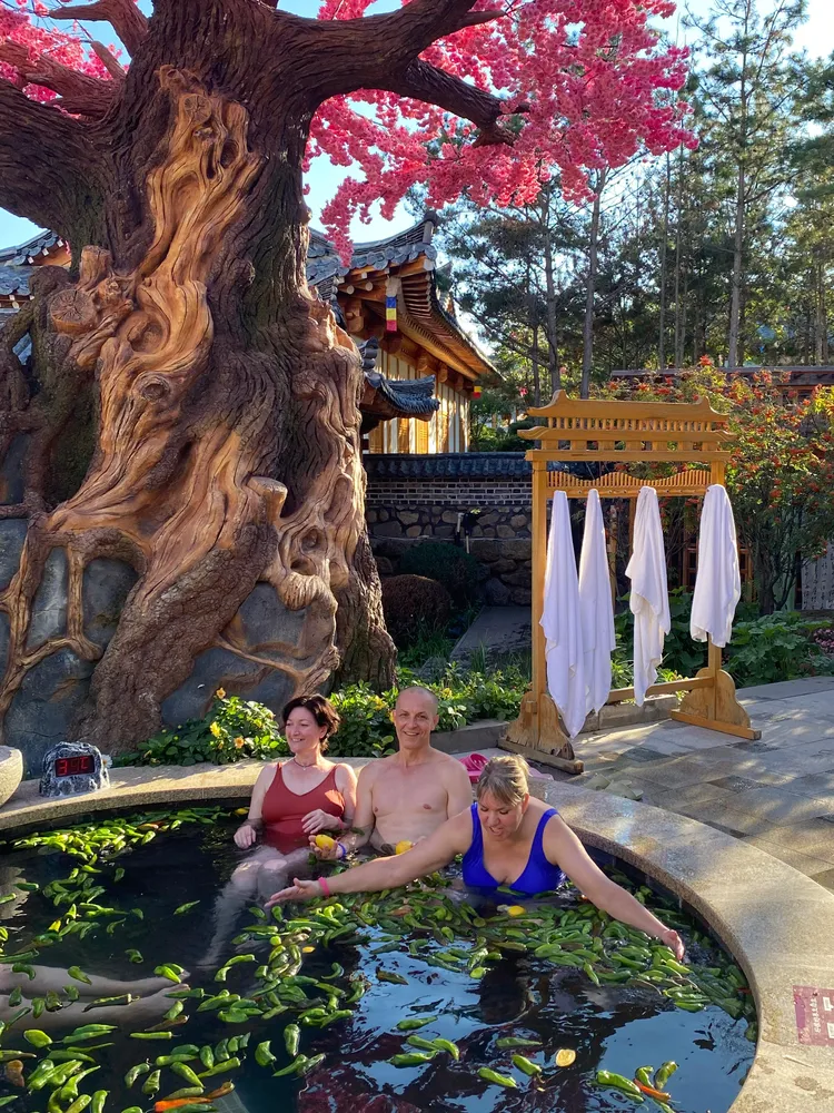 Не пропустите термальный рай Людишань: здесь целых 18 бассейнов, наполненных термальной водой с уникальными добавками: молочными, винными и многими другими. Найдется все для не только для души, но и для тела – от корейской сауны до аквапарка, от солевого терминала до детской площадки с множеством развлечений.